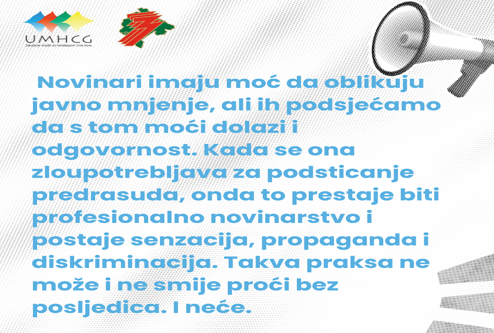 Novinari imaju moć da oblikuju javno mnjenje, ali ih podsjećamo da s tom moći dolazi i odgovornost. Kada se ona zloupotrebljava za podsticanje predrasuda, onda to prestaje biti profesionalno novinarstvo i postaje senzacija, propaganda i diskriminacija. Takva praksa ne može i ne smije proći bez posljedica. I neće.